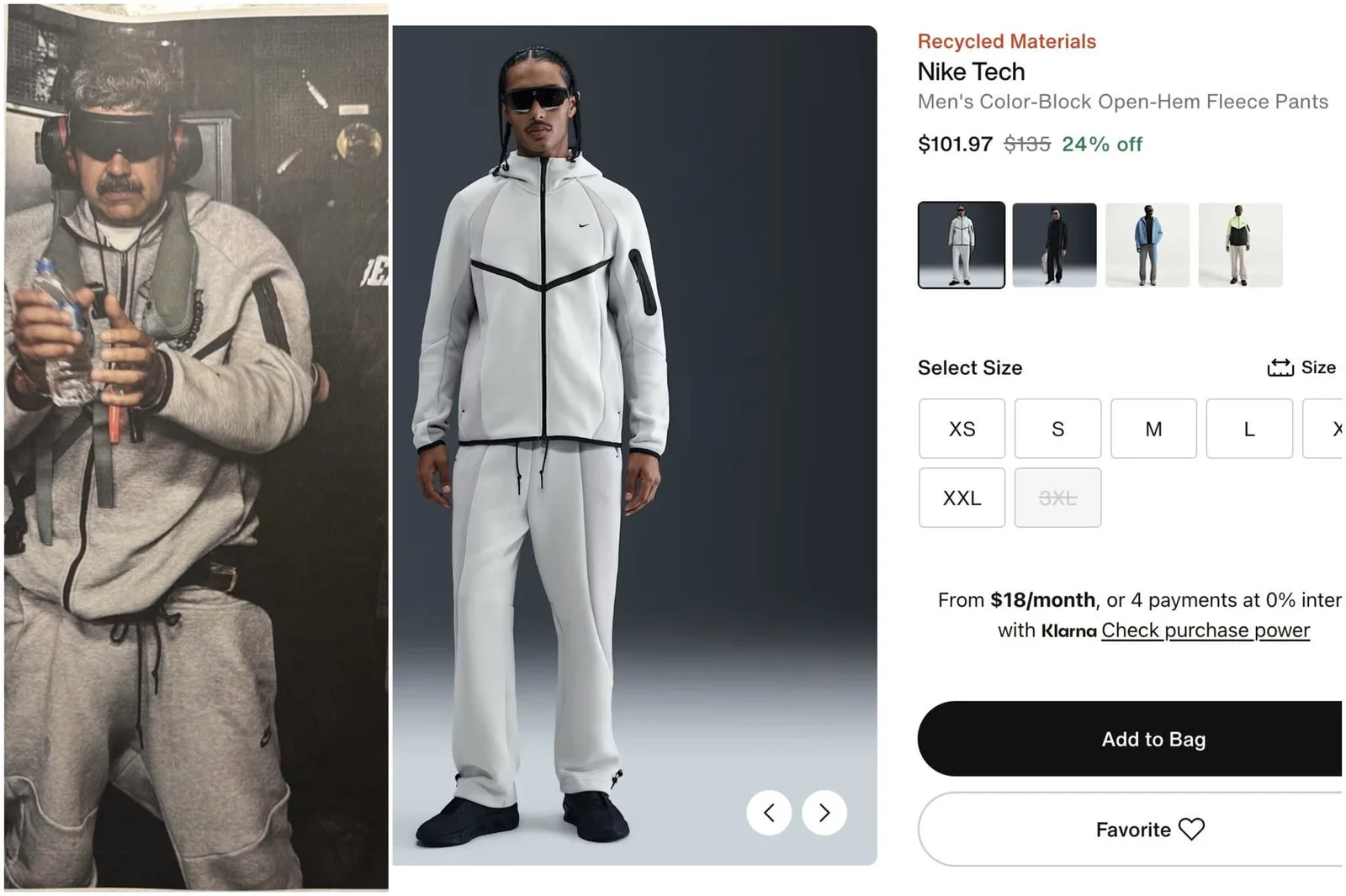 La fotografía viral, compartida por Donald Trump en redes, mostró a Maduro escoltado, con los ojos y oídos cubiertos mientras era trasladado y cuya vestimenta no coincidía con el dramatismo del momento: un conjunto gris compuesto por una sudadera Windrunner y joggers, los cuales ahora pertenecen a esa categoría incómoda donde la moda hace más ruido que el discurso, porque no solo es un conjunto gris ¡es Nike!